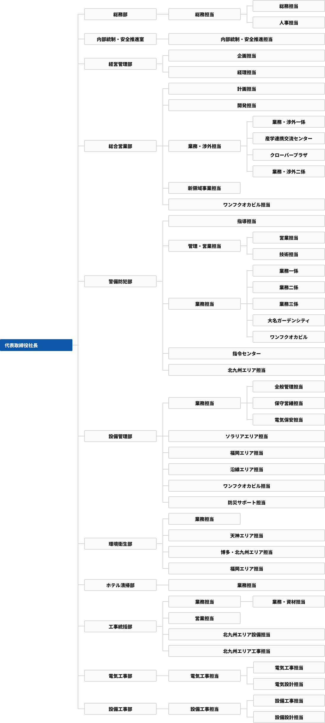 | 業務内容 | 設備管理業務・警備業務・環境衛生業務・ホテル清掃業務・建築設備工事業務・機械警備業務・PPP事業・防災業務・駐車場管理業務 |